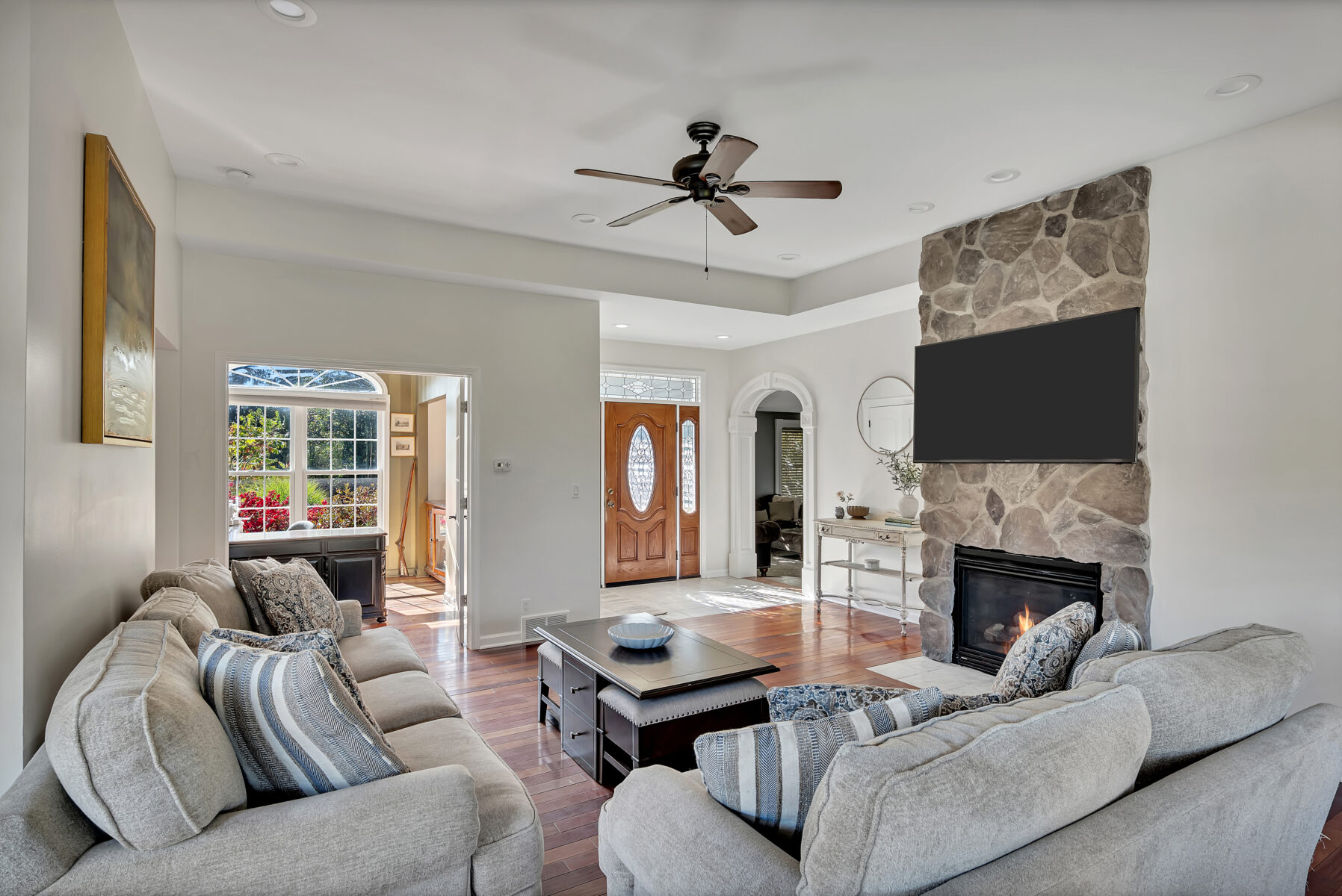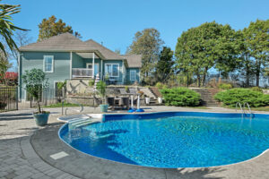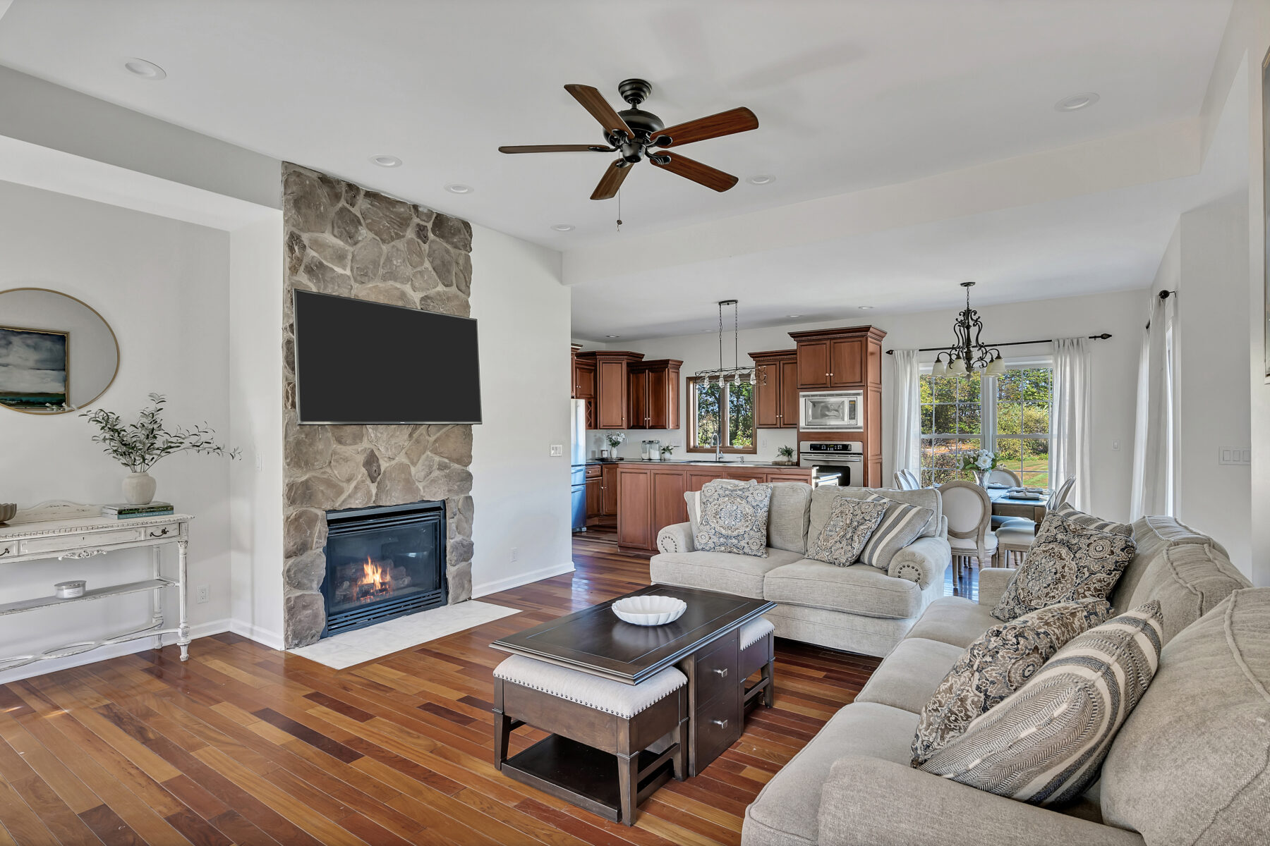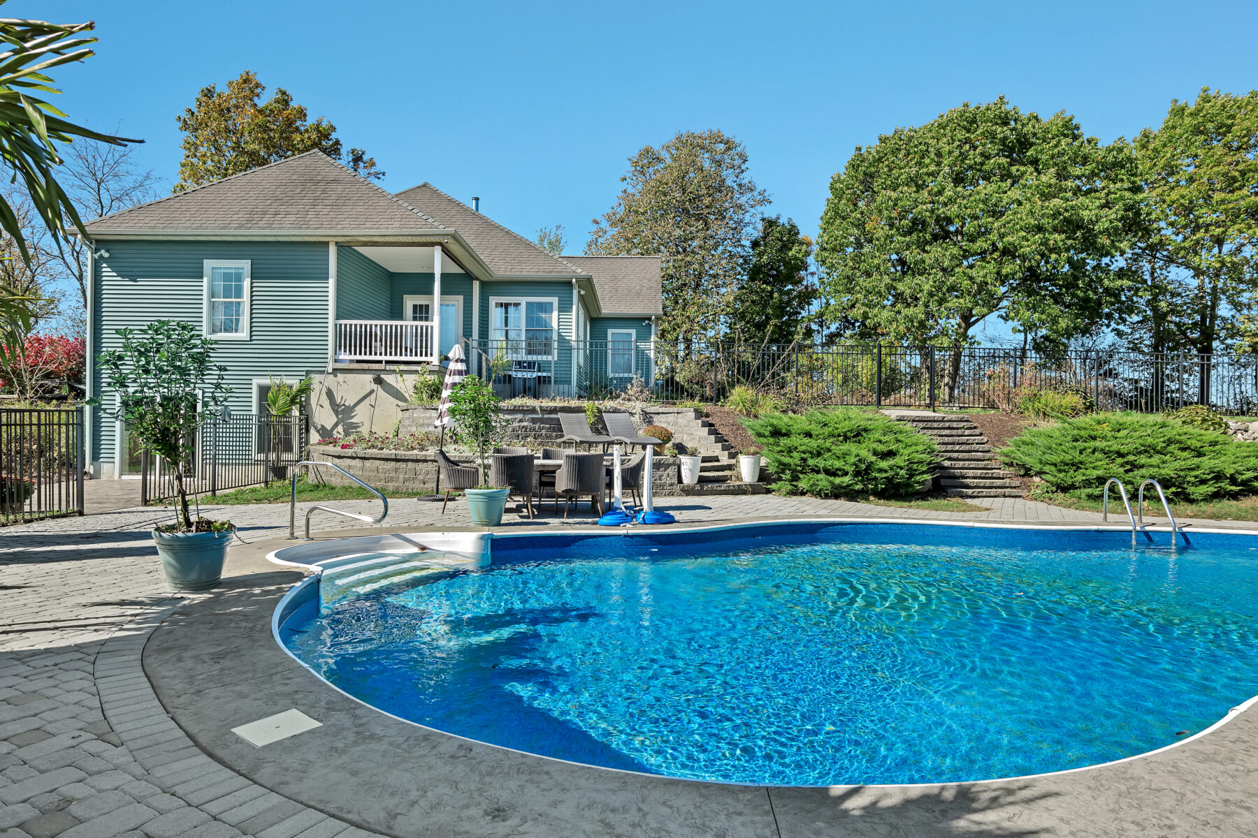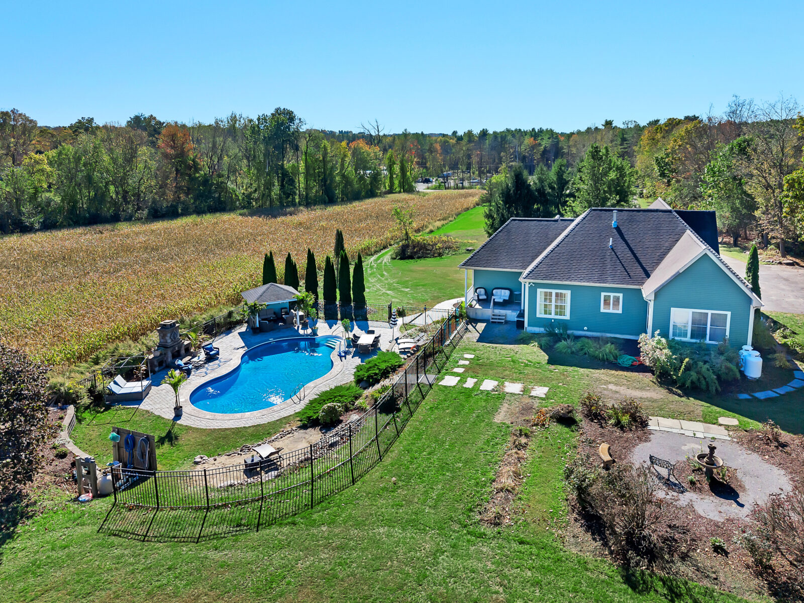 Nestled behind a gated entrance and surrounded by nearly three acres of beautifully landscaped grounds, 123 County Route 70 in Stillwater offers a refined country lifestyle just minutes from Saratoga Lake. Built in 2007, this European-inspired home features three bedrooms, three full bathrooms, and a home office. The front of the home showcases a circular driveway, a striking stone façade, and a grand entrance with blue stone stairs leading to a covered front porch. Inside, the kitchen features cherry cabinetry, granite countertops, stainless steel appliances, and a large walk-in pantry. It opens to the dining area and living room, where you will find tray ceilings and a gas fireplace. The first-floor primary suite offers a spacious, spa-like bath with an oversized ceramic tile shower, dual vanity, and built-in shelving. It also includes a generous walk-in closet complete with a custom built-in closet system. The finished lower level includes a home theater with a projector and a separate recreation room with access to the outdoors. The backyard is designed for entertaining with an inground pool, paver patio surround, a built-in outdoor fireplace, and a cabana. Enjoy privacy and natural beauty with scenic walking trails, a private 600-foot driveway lined with flowering pear trees, and additional amenities including a basketball and pickleball court, garden beds, and cleared acreage ideal for expansion or recreation. Additional highlights include a newer furnace and central air. An adjoining 15-acre parcel is also available for purchase. This is an exceptional opportunity to own a private retreat in a prime location near Saratoga Lake. Schedule your private showing today and experience luxury living at its finest.